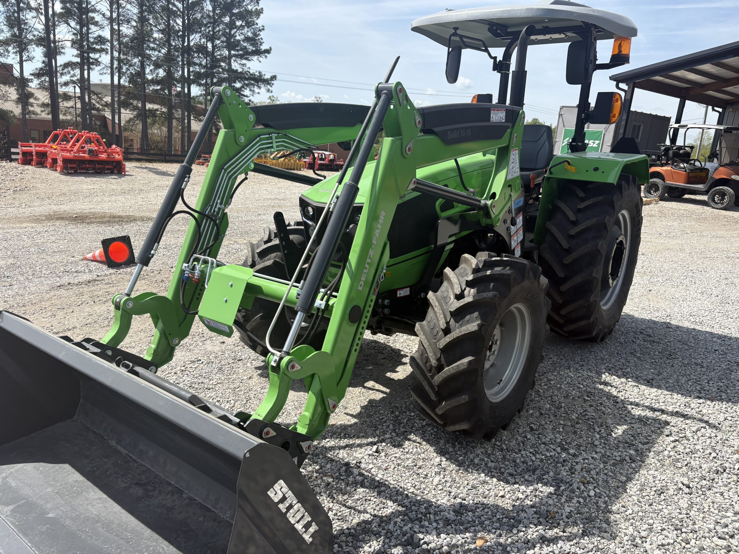 Deutz Fahr 4065 Tractor 65 HP, No Def Or Regin, 12 X 12 Mechanical Transmission, Diesel, Power Steering, 4 Wheel Drive, 2 Rear Remotes, Independent PTO, Rops, Canopy, Rear Weights, Front Fenders, Radial Tires, 3 PH, Stoll Solid 30-16 Quick Attach Self Leveling Loader, Skid Steer Style Quick Attach, Joystick Control, 3rd Function, 2 Year Bumper To Bumper Warranty